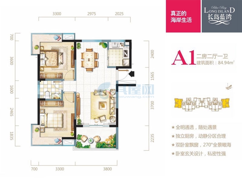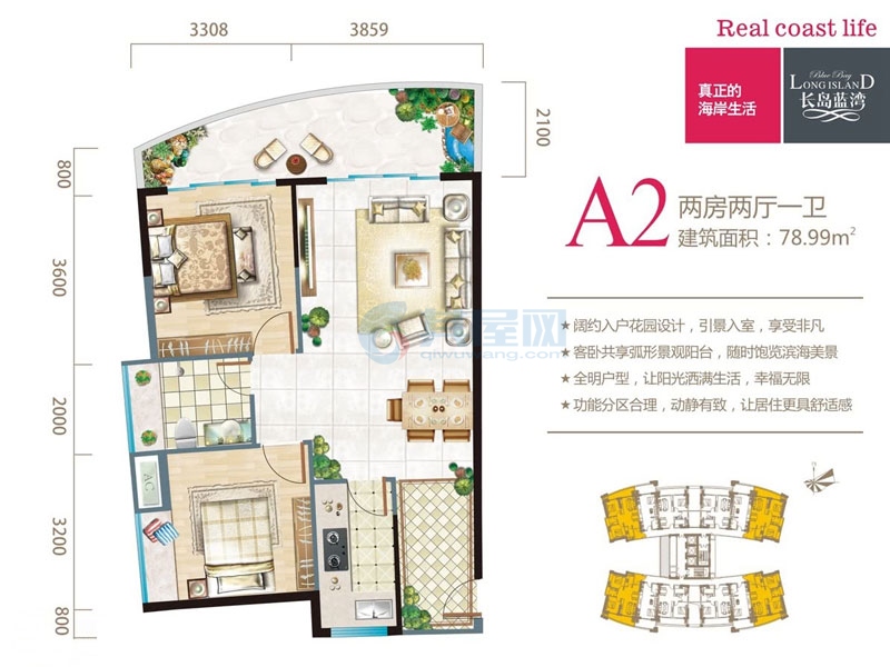 长岛蓝湾住宅在售,长岛蓝湾建面为44-97平米一至两房户型