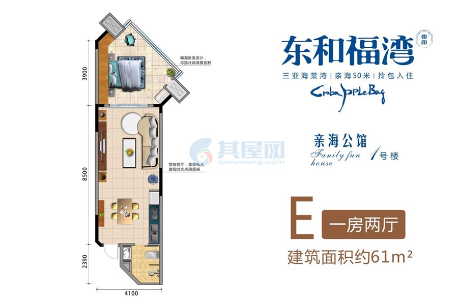 东和福湾住宅在售,建面为61-110平米一至三房户型,东和福湾总价450-950万/套