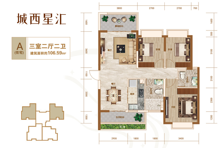 主力户型: 建筑面积:82-118㎡两房-三房