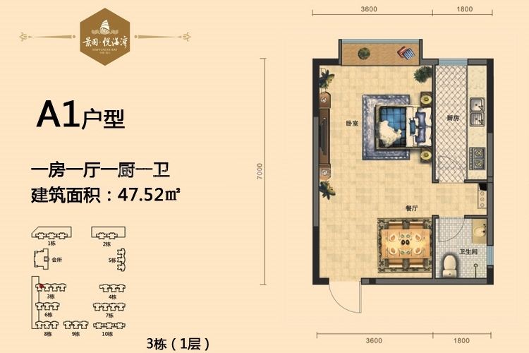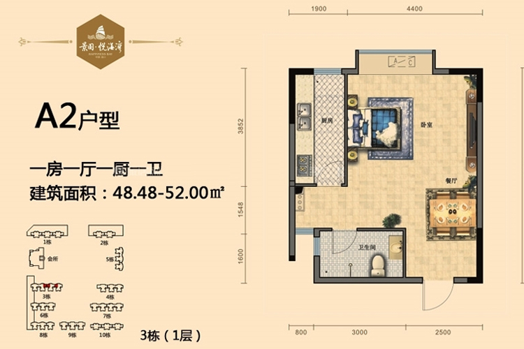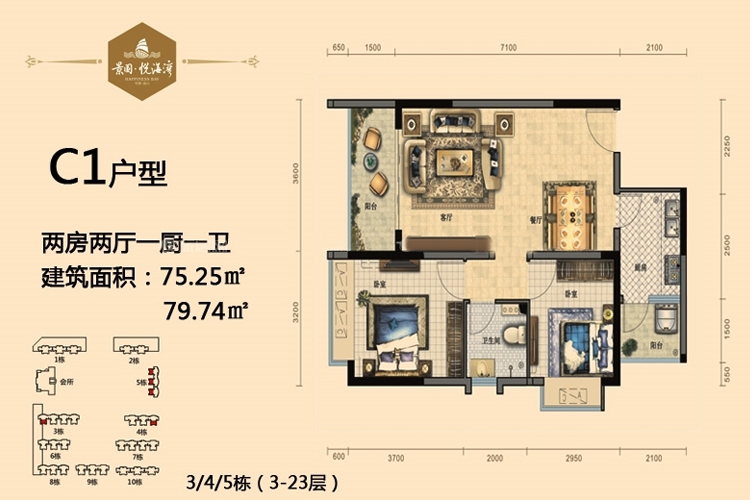 景园悦海湾建面为61.51-119.46平米一至三房户型
