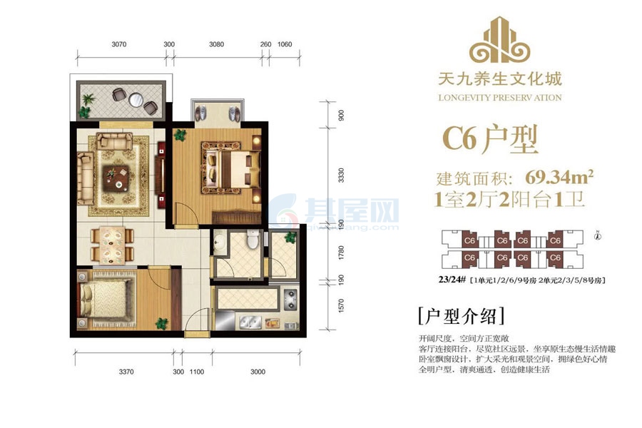 天九养生文化城推出11套房源,建面为69-79平米一至两房户型,单价约6999-7251元/平,总价49-57万/套