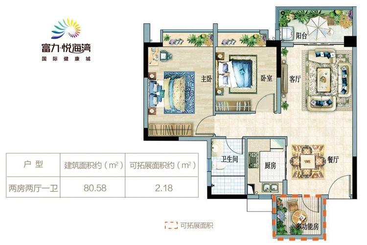 富力悦海湾:云海阁一期洋房享95折 总价98.6-106万/套,5套房源