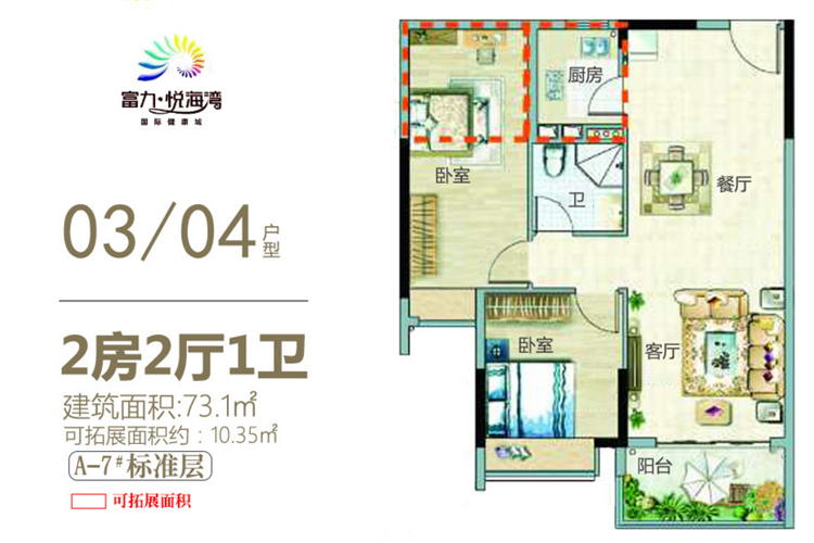 主力户型: 73.10平米二房、105.09平米三房