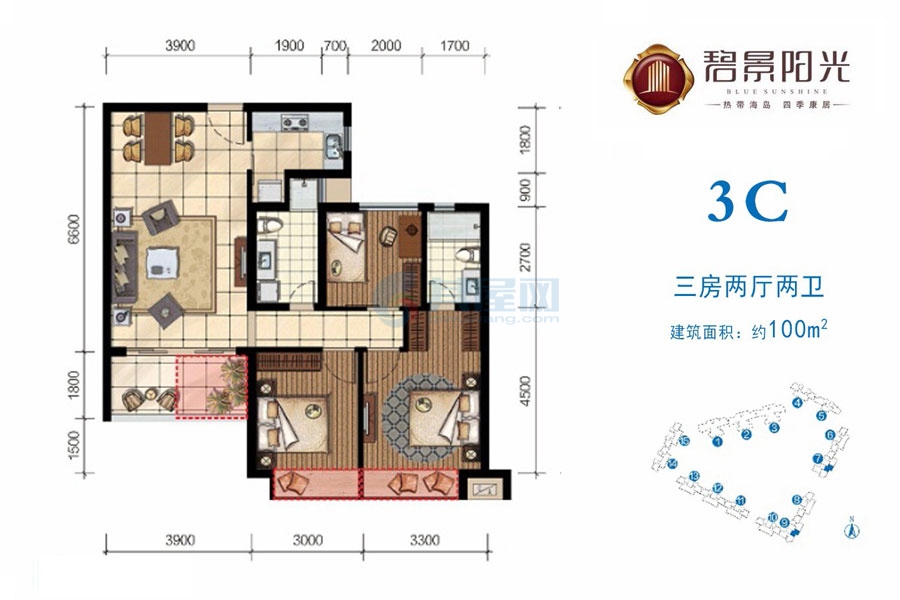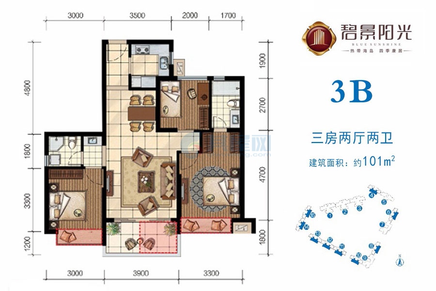碧景阳光二期主推建面约101-140㎡板式精壮三至四房,认筹单价8500元/㎡ 碧景阳光销售部咨询热线 0898-66692588 二十四小时免费专车看房