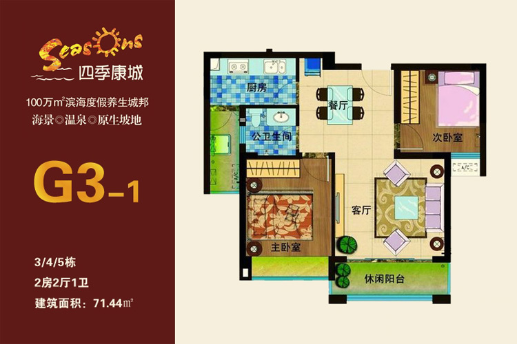澄迈四季康城二期D区住宅在售,建面为91.43平米两房户型,价格为12800元/平