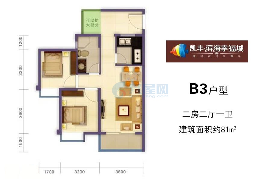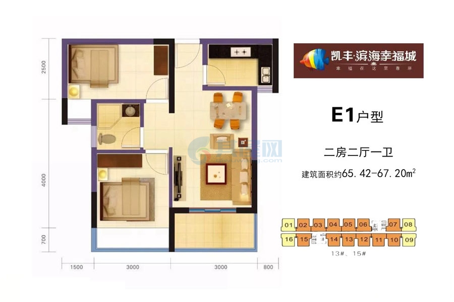 凯丰滨海幸福城:住宅总价66-72万/套 10套两房户型任你选