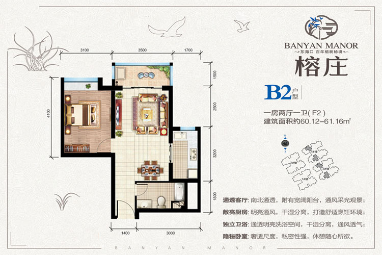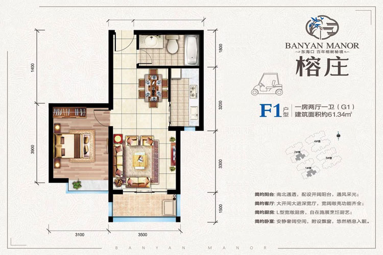 榕庄住宅推出10套小户型,榕庄建面为62.18-62.33平米一房户型,榕庄总价65-68万/套