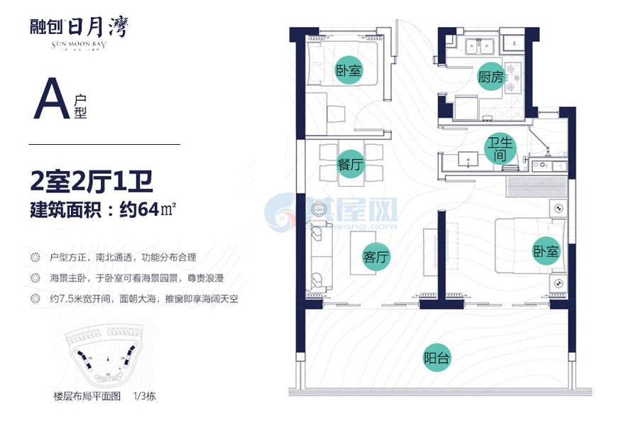 万宁融创日月湾住宅在售,建面为64-153平米二至三房户型