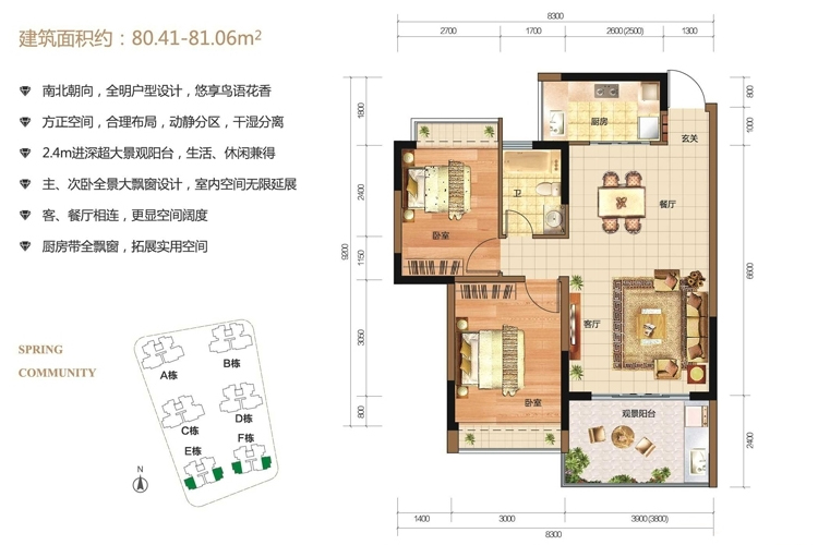(建筑面积)80㎡(二居)、87.28㎡(三居)