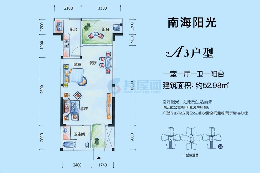 南海阳光住宅推出10套小户型,建面为33.78-62.2平米,总价34-65.9万/套